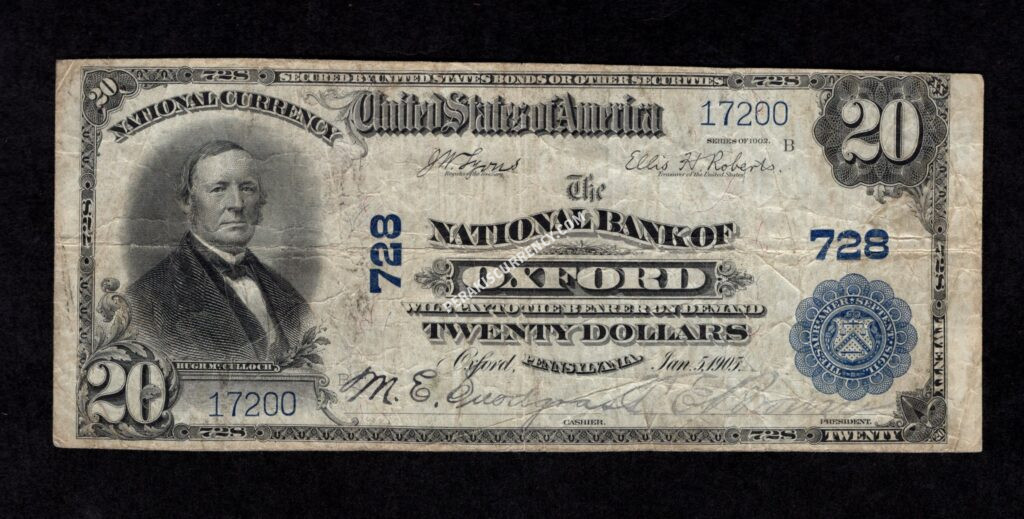 Fr No.DenomStateDate/TypeCharter NumberTownGradePrice 650$20Pennsylvania1902728OxfordVF$395 Well centered $20 1902 from this Chester County bank. Clear signatures. Inquire About This Note - National Notes "*" indicates required fields FacebookThis field is for validation purposes and should be left unchanged.Name* First Last Email* PhoneNote(s)Message Subscribe to New Notes Notifications Δ