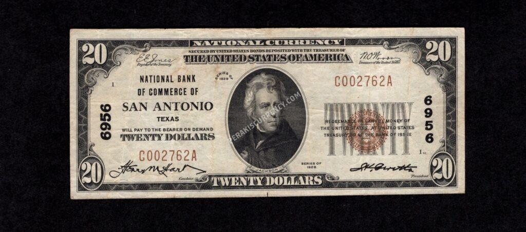 Fr No.DenomStateDate/TypeCharter NumberTownGradePrice 1802-1$20Texas19296956San AntonioVF$285 Inquire About This Note - National Notes "*" indicates required fields EmailThis field is for validation purposes and should be left unchanged.Name* First Last Email* PhoneNote(s)Message Subscribe to New Notes Notifications Δ