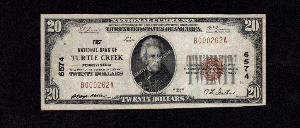 | 1802-1 | $20 | Pennsylvania | 1929 | 6574 | Turtle Creek | VF | $425 |