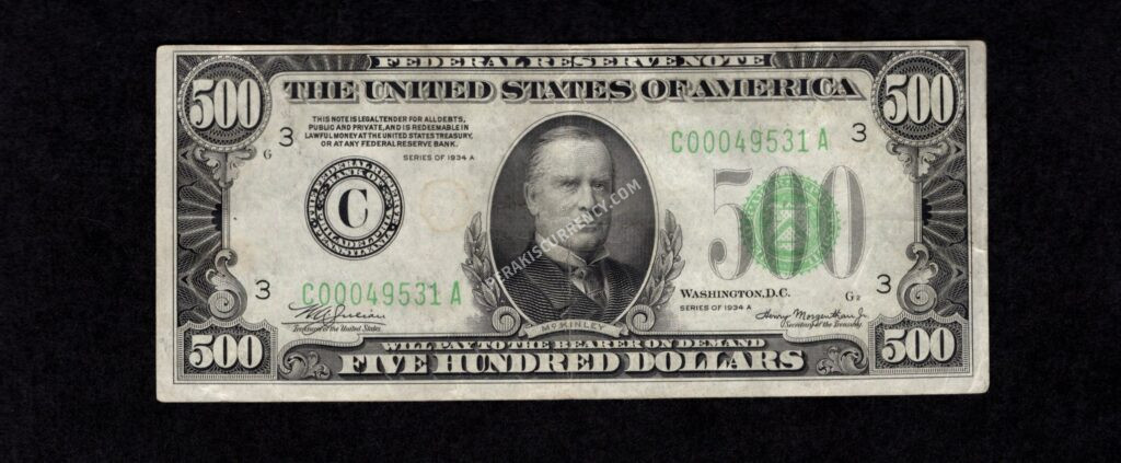| 2202-C | $500 | FRN | 1934A | VF | $1650 |