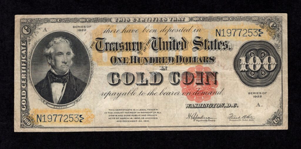 Fr No.DenomTypeDateGradePrice 1215$100Gold Certificates1922VF$1750 An evenly circulated Gold Certificate with broad and balanced margins all around. Inquire About This Note - Type Notes "*" indicates required fields InstagramThis field is for validation purposes and should be left unchanged.Name* First Last Email* PhoneNote(s)Message Subscribe to New Notes Notifications Δ