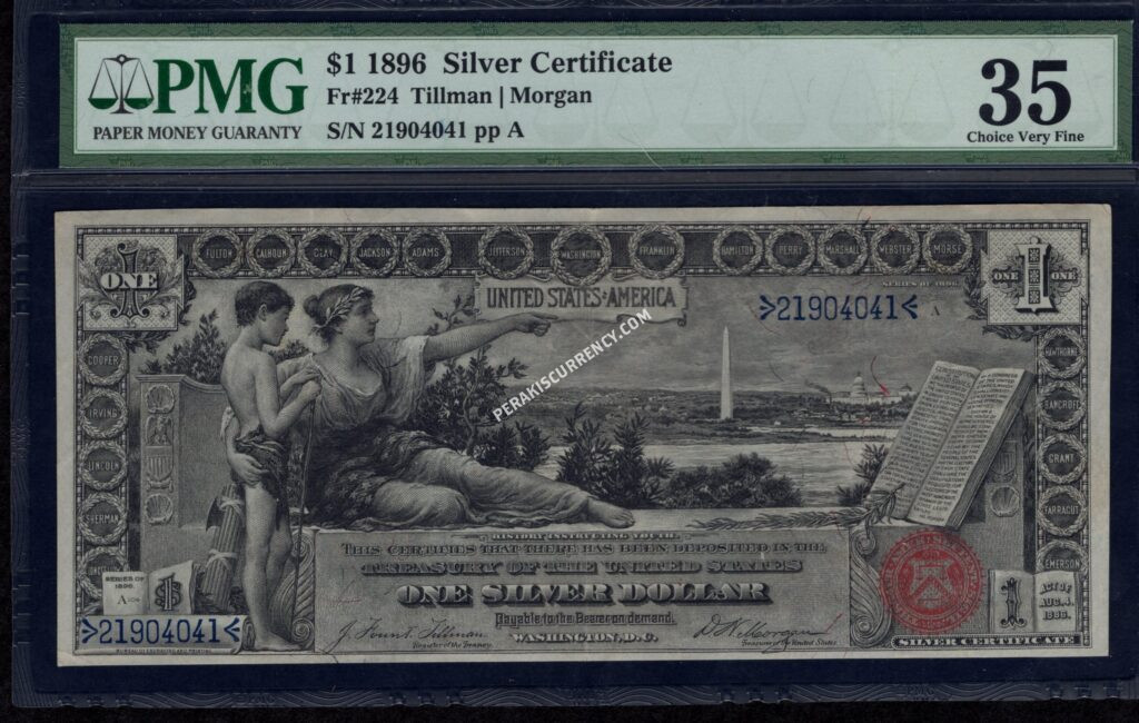 | 224 | $1 | Silver Cert. | 1896 | PMG 35 | $1465 |