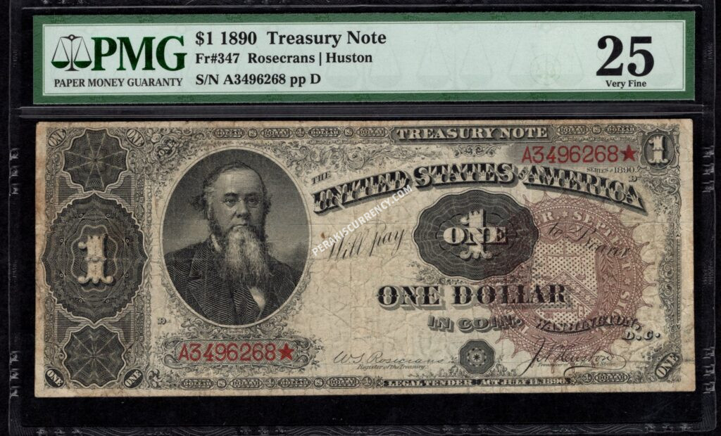 | 347 | $1 | Treasury Notes | 1890 | PMG 25 | $985 |